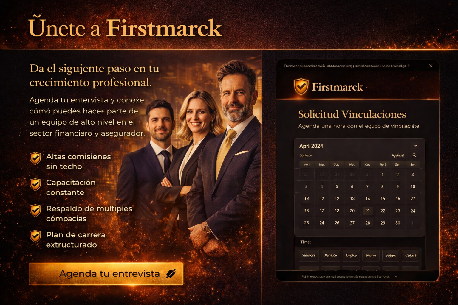 Agenda tu entrevista y comienza a construir una carrera con ingresos ilimitados en el sector financiero.